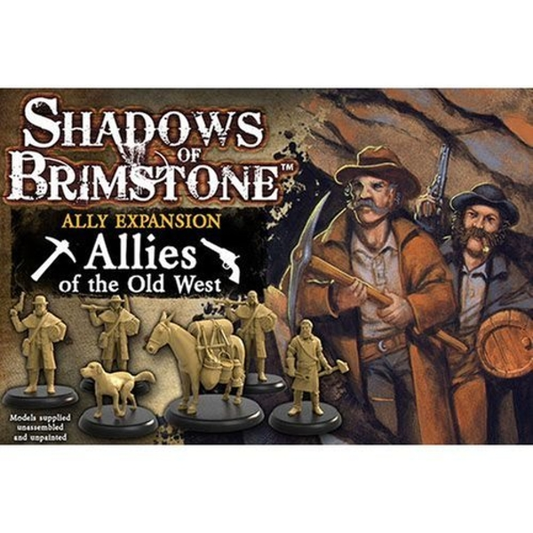 When Dark Stone was first discovered in the area around Brimstone, outsiders flooded in, looking to get rich! Now, they come looking to make a name for themselves (and maybe get rich along the way too). Though many of those that arrive are true Heroes in their own right, most are common folk with dollars in their eyes, blinding them to the horrors that await. Hiring themselves out as Henchmen, they join up with posses heading down into the dark mines. The flood of fortune seekers and merchants have also brought with them supplies and Pack Mules to carry the load, Blacksmiths to support the effort and forge the black rock, and Faithful Dog companions to help in hunting through the dark places of the world.This Ally Expansion Pack contains everything you need to add Old West Allies to your games of Shadows of Brimstone! Included are 3 Henchmen models, 1 Blacksmith model, 1 Faithful Dog model, and 1 Pack Mule large model, the medium size Ally Record Sheets for using Basic and Advanced versions of each Ally Type, the Upgrade and Mutation Charts for each Ally Type, 1 Extra Large Henchmen Exploration Chart (including the Gruesome Fate chart), and a host of new cards themed around hiring on these Old West Allies to help your Heroes out on your adventures down in the mines and beyond!