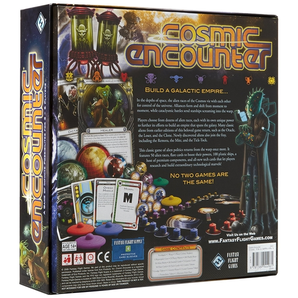 This classic game of alien politics returns from the warp once more. It features 50 alien races, flare cards to boost their powers, 100 plastic ships, a host of premium components, and all-new tech cards that let players research and build extraordinary technological marvels! No two games are the same!.