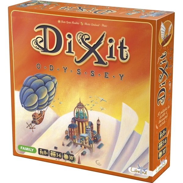 The fantastic universe of Dixit, winner of the Spiel des Jahres 2010, returns to entrance you once more. With Dixit Odyssey, continue the adventure in new worlds that will enchant and delight. Dixit Odyssey gives players the chance to choose the whimsical and dreamlike art that matches the storyteller’s tale, and then see if they can find the storyteller’s card among all those before them. Using your imagination and wit, journey through wild and magical new worlds and rediscover the brilliance and wonder of the original. Discover 84 new illustrations by Piero and Marie Cardouat in Dixit Odyssey, the standalone game for up to 12 players that include a new, more practical scoreboard, voting pads, and new rabbit tokens. Plus Dixit Odyssey has room to store all the cards from both Dixit and Dixit 2, so you can take the whole game with you in one box. A new universe of magical worlds awaits! Â