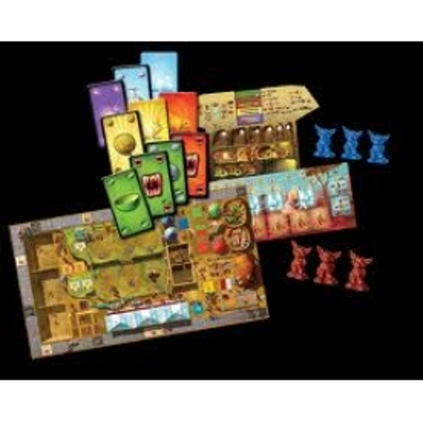 The game consists of several rounds in which players use unusual worker placement mechanisms (players simultaneously prepare different sized groups of imps in order to play sooner than others). To become the leader of imp family that has just started a new business, they will have to prepare themselves for the uneasy task of raising creature cubs and pleasing their different needs represented by cards in order to sell them as grown scary creatures to Dungeon Lords. In the meantime they also attend various contests in which they show off their pets, scoring additional points.  Â