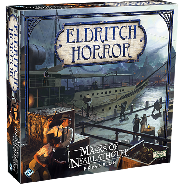 Eldritch Horror: Masks of Nyarlathotep is an expansion for Eldritch Horror, a cooperative boardgame for one to eight players where intrepid investigators must traverse the globe in an attempt to thwart the cataclysmic rise of an otherworldly Ancient One. Strange cults are gathering strength in remote corners and bustling cities all over the world. Though they seem to worship different gods, the investigators have found a thread that runs throughout all of the cultists’ horrific rites.