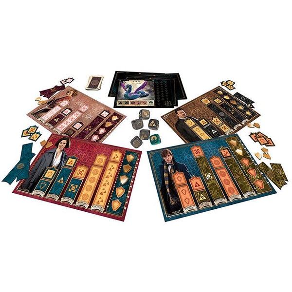 Several of Newt Scamander’s magical beasts have escaped and are running loose in New York City. In Fantastic Beasts: Perilous Pursuit, players take on the role of Newt, Tina, Jacob and Queenie on an exciting adventure as they try to return all the beasts to Newt’s suitcase before they draw the attention of the non-magical community. To do this, they need to collect sets of dice to take actions that allow them to shield each other, draw cards, and most importantly, get the beasts back into his suitcase before havoc ensues.