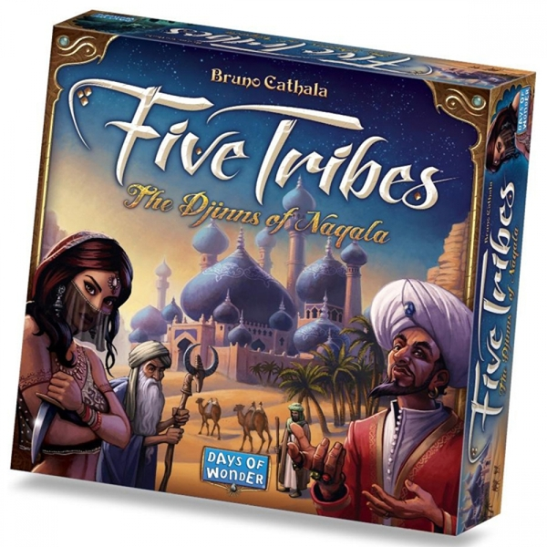 In this worker displacement game you score by carefully maneuvering the Five Tribes of Meeples over the tiles that make up the ancient city state of the Sultanate of Naqala. You need to look ahead to determine what moves will not only position you to score well but put your opponents at a disadvantage. It’s when how and where you displace the Five Tribes of Assassins, Elders, Builders, Merchants & Viziers that will determine your victory or failure!