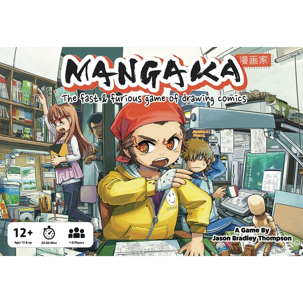 Mangaka is a hilarious, creative card game where you and your friends play comic artists competing for fame over 4 rounds of frantic drawing!