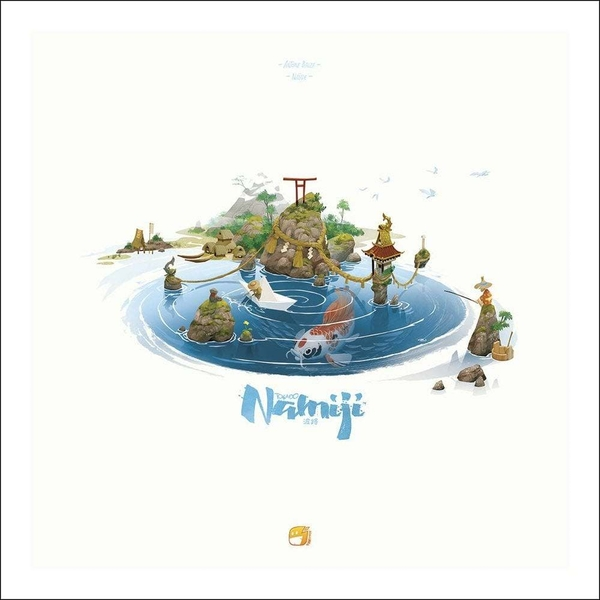 Namiji features gameplay similar to Tokaido. The action spaces are laid out on the game board in a linear track, with players advancing down this track to take actions. The player who is currently last on the track takes a turn by advancing forward on the track to their desired action and taking that action, so players must choose whether to advance slowly in order to get more turns, or to travel more rapidly to beat other players to their desired action spaces.