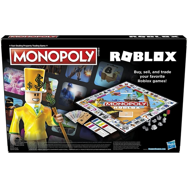In the Monopoly: Roblox 2022 Edition board game, players buy, sell, and trade some of their favorite Roblox experiences including Adopt Me!, Welcome to Bloxburg, Royale High, and more! The game includes a special code that allows you to redeem an exclusive virtual item (Mr. Bling Bling Hat) on Roblox!* Featuring artwork, themes, and elements inspired by the popular online platform, players move around the board buying as many Dev Home Offices and Dev Studio Offices as they can. The game is for 2-6 players, ages 8 and up, and makes a great gift for Roblox fans!