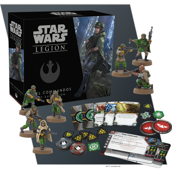 Within the Rebel Commandos Unit Expansion, you’ll find a squad of seven unpainted, easily assembled Rebel Commando miniatures. You may field this unit as a full, standard unit on your battlefield or a small team operating on the edges of the map or behind enemy lines, but no matter how you position the Rebel Commandos, their unorthodox tactics and powerful weapons can sway the battle in the Rebellion’s favor. With five distinct upgrade cards that can be added to the Rebel Commandos or another unit, you’ll find everything you need to put fear in Imperial hearts with this expansion for Star Wars: Legion.