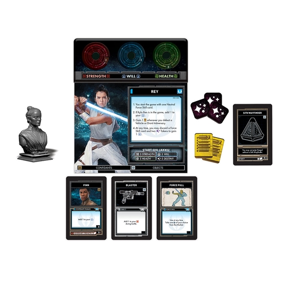Adventurers can choose from 12 playable characters to charge their way into the inner rings of the galactic gameboard. Luke Skywalker, Darth Vader, Rey, Kylo Ren, Count Dooku, and Obi-Wan Kenobi are among the custom sculpted game pieces true to every beloved Talisman game!